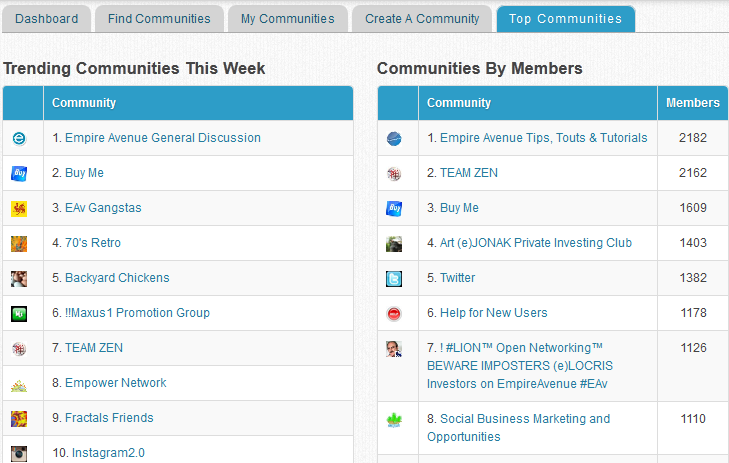 Hello once again Empire Avenue Community! Nick the Intern here, and today I have a few thoughts about Communities on Empire Avenue.