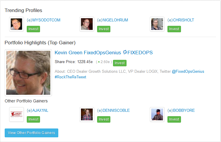 Underneath the Share Price box you will find the Trending Profiles box. This box will show your best Share Price gainers, and directly underneath will be your Portfolio Highlights, which will currently display your Top Gainer as well as any Missions that they have available.