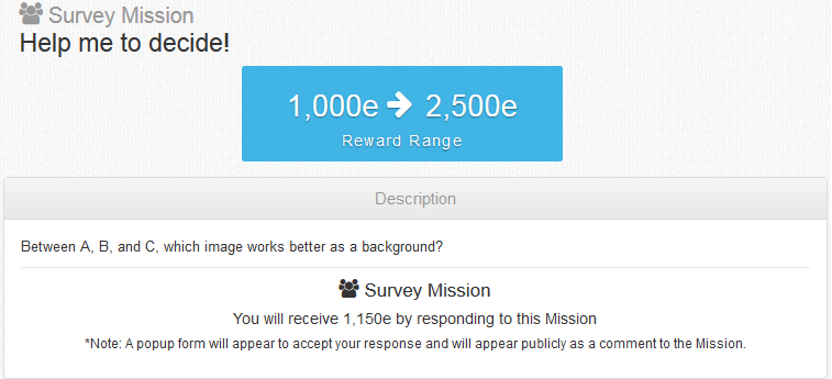 Survey Missions are a great new way to get insight on your original content, or anything else that you want to start a discussion about! Survey Missions work much like a regular Mission. Choose your Mission rewards, destination, etc. Where a Survey Mission differs from a regular Mission however is in the “Your Question” box, wherein you can put any question about your linked destination! For example you could set the Mission destination to your YouTube page, and ask a question of “Which video did you like the best?”. The Mission completer will see this question pop up on Empire Avenue after being taken to the destination, and the Mission reward will be awarded upon answering the question! It is a great way to get instant feedback on any of your projects!