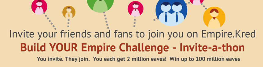 You can earn up to 100 million eaves by recruiting 50 people. Sound intimidating? Start by aiming for 5 - that's 10 million eaves! Just for getting people who will improve your Empire.Kred experience to join you.